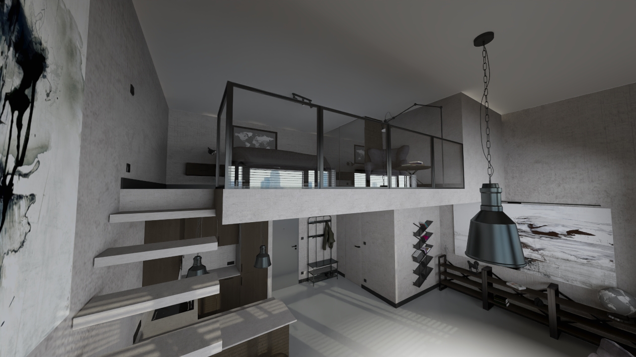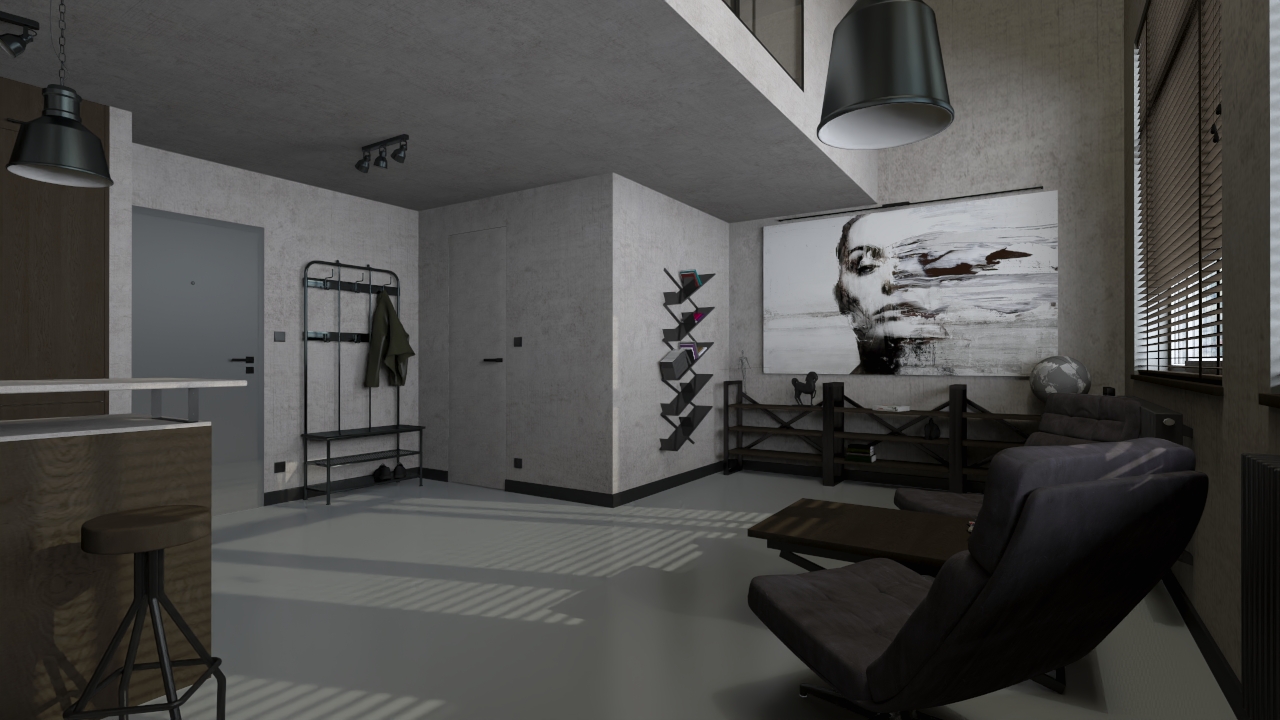 Naszym celem było zaprojektowanie funkcjonalnego mieszkania o mocnym, industrialnym charakterze, w którym antresola stanie się zarówno praktycznym, jak i wizualnym atutem. Chcieliśmy, aby wnętrze łączyło surowość loftu z komfortem codziennego życia.